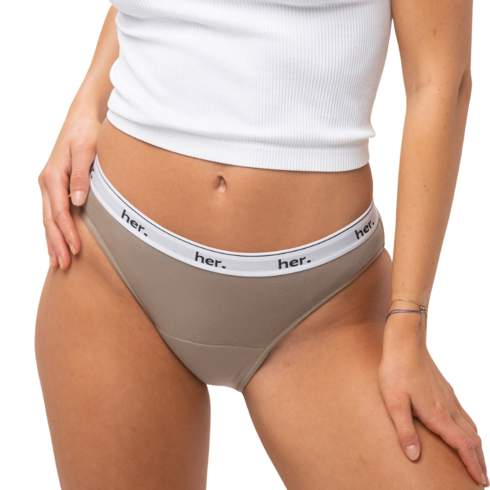 Une culotte menstruelle ou culotte de règles est un sous-vêtement lavable et réutilisable, disposant d’une zone ultra-absorbante et imperméable qui fait à la fois office de lingerie et de protection hygiénique pour les personnes menstruées. La culotte menstruelle séduit de nombreuses femmes et adolescentes de par sa simplicité mais aussi parce qu’elle est réutilisable, sans odeur et offre en moyenne 6 à 12 heures de protection dans le plus grand confort. Au travail, au lycée, la nuit, pendant une activité sportive ou encore en voyage, la culotte de règles Her Underwear est un sous-vêtement qui peut être utilisé en toutes circonstances. Conçue à l’origine pour les menstruations, la culotte menstruelle peut tout aussi bien convenir en cas de fuites urinaires légères, durant une grossesse pour les pertes blanches ou encore en retour de couche / post-partum pour vous protéger des lochies.