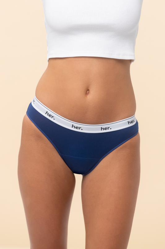 Parce que nous avons toutes de nombreuses préoccupations, la culotte menstruelle Her Underwear a été conçue pour simplifier votre vie et vous garder à l’abri des fuites. Plus besoin de changer de protection en fonction de l’intensité de vos règles : votre culotte menstruelle Her Underwear s’ajuste à votre cycle et vous assure une protection optimale, quel que soit votre flux.
