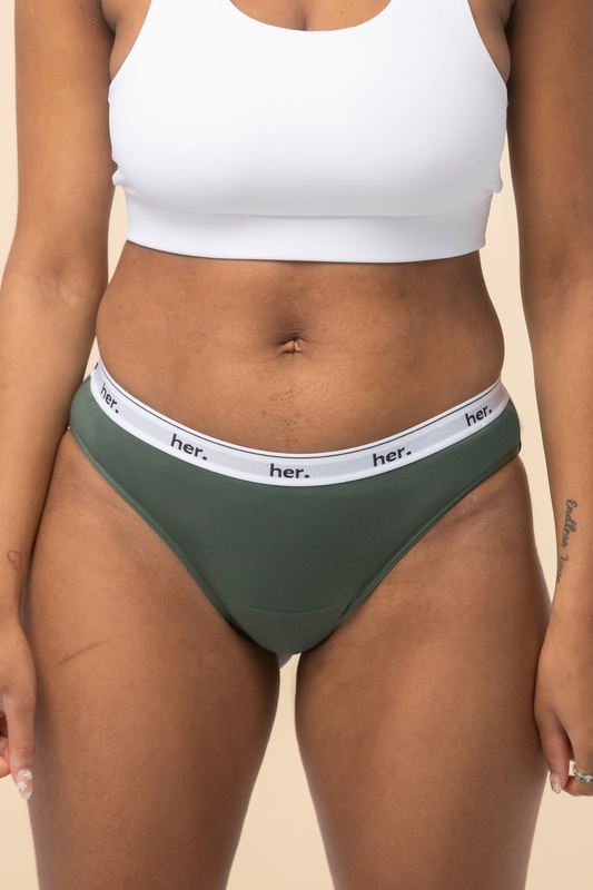 Découvrez l’alternative responsable aux tampons et aux serviettes hygiéniques : la culotte de règles Her Underwear, ultra-absorbante, facile à laver et 100% saine. Boxer, taille haute, shorty ou encore culotte menstruelle classique, faites votre choix parmi plus de 14 modèles qui vous protège jusqu’à 10 heures pendant vos règles.